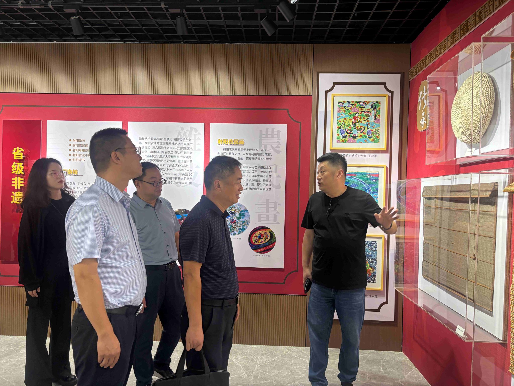调研首站,陈广正、李富荣一行在射阳县文化馆开展实地考察。在文化馆馆长顾东升、党支部书记蔡敬东的引导下,依次参观非遗展厅、美术展厅、音乐教室与悦空间,系统调研射阳非遗保护体系的建设规模与传承机制,重点听取了关于射阳杂技、蓝印花布、农民画、草编工艺等地域特色文化项目。双方围绕“校地协同,共育时代新人”展开座谈,在亲切融洽的氛围中达成长期协作共识。学院将分批组织学生走进射阳文化馆,沉浸式体验非遗技艺、名家讲堂、“趣”文化馆等群文活动,真实触摸技艺的温度、民俗的魅力,真正实现以劳育淬炼身心、以美润泽人生的教育目标。