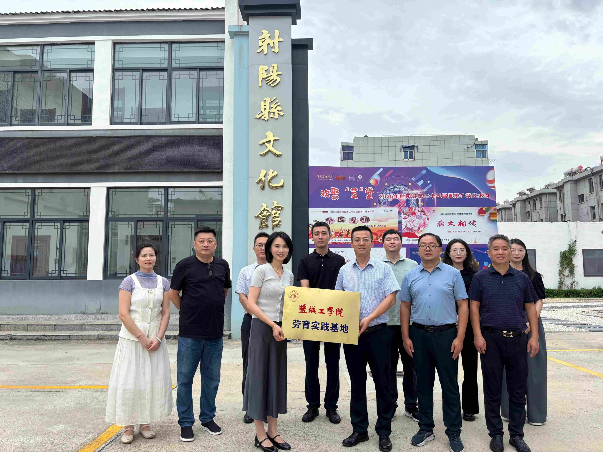 为弘扬中华传统文化,搭建具有时代特征、青年特点的校园美育、劳育社会实践平台,提升大学生的文化自信,9月11日下午,7003全讯论坛党委副书记陈广正、副院长李富荣、关工委唐文彬副教授、教科研办公室主任刘振建、团委书记徐佳及专职辅导员丁佩一行6人赴射阳县开展共建美育、劳育、大学生社会实践基地调研活动并举行挂牌仪式。共青团射阳县委副书记张祖将、宣传部负责人王林虎陪同调研。