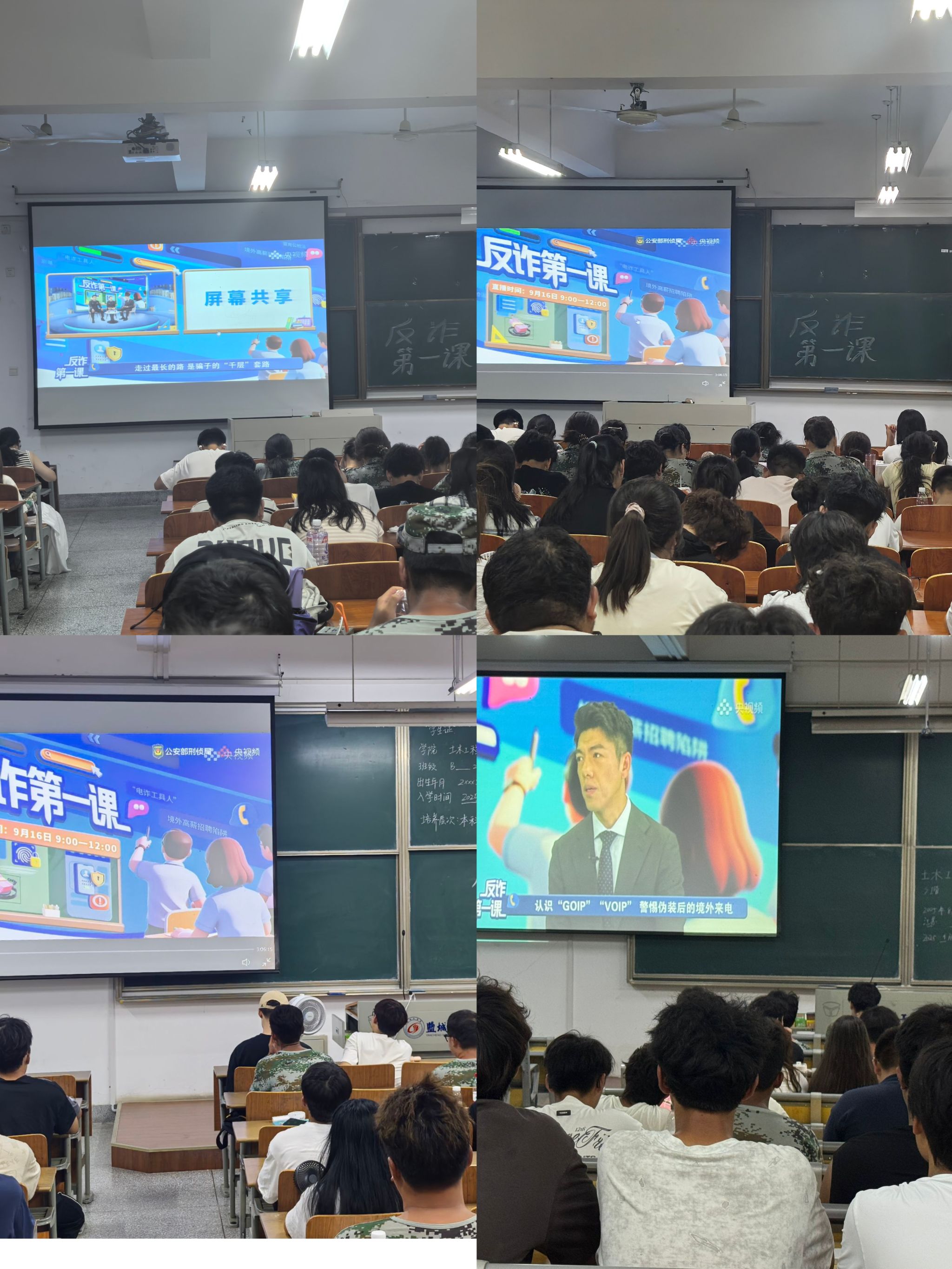 916日,学院组织以班级为单位,集体同上一堂反诈大课,各班级同步通过公安部刑侦局微信视频号、国家反诈中心微信视频号等官方平台观看“守护青春网络有你”系列活动之2025年秋季学期“大中小学生反诈大讲堂”。本次直播中,民警结合典型案例,生动讲解防骗知识,揭露各类诈骗手段的套路与破绽。同学们认真听讲并将典型诈骗手段牢记于心,进一步深化了对诈骗形式的理解。