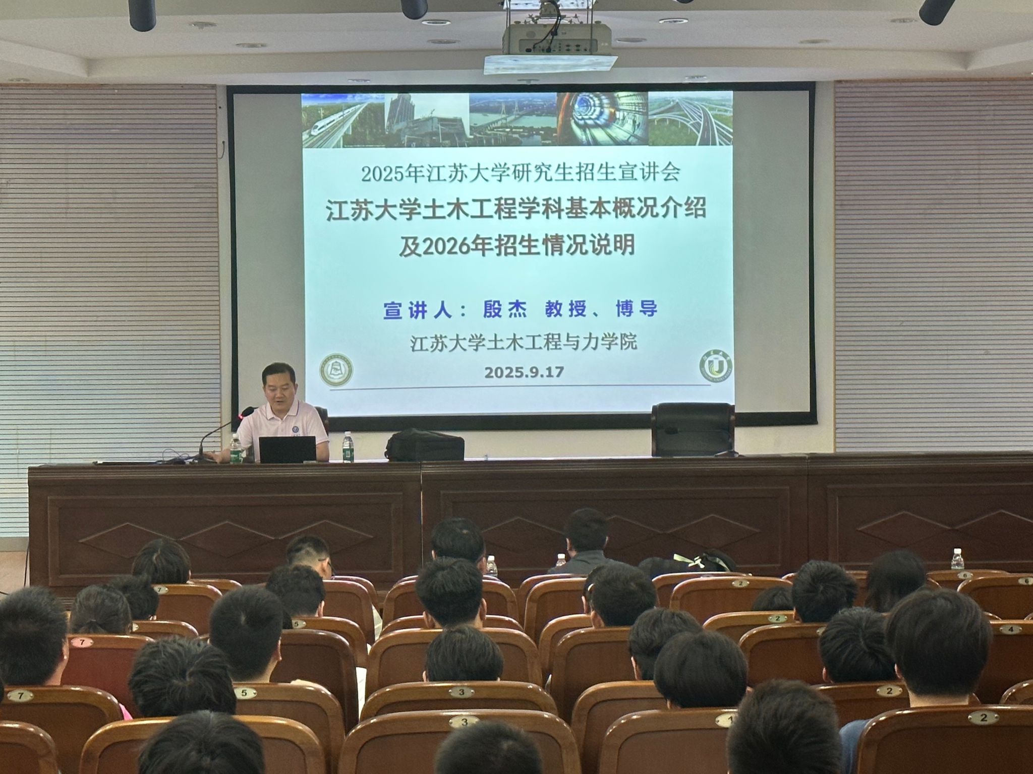 917午,在土木馆报告厅,江苏大学土木工程与力学学院博士生导师、土木工程系副主任殷杰教授一行3人到我院开展研究生招生宣传学院院长王照宇、土木工程系主任宋爱明、学工办副主任徐传洪,学院20222023级拟考研学生代表110余人参加。