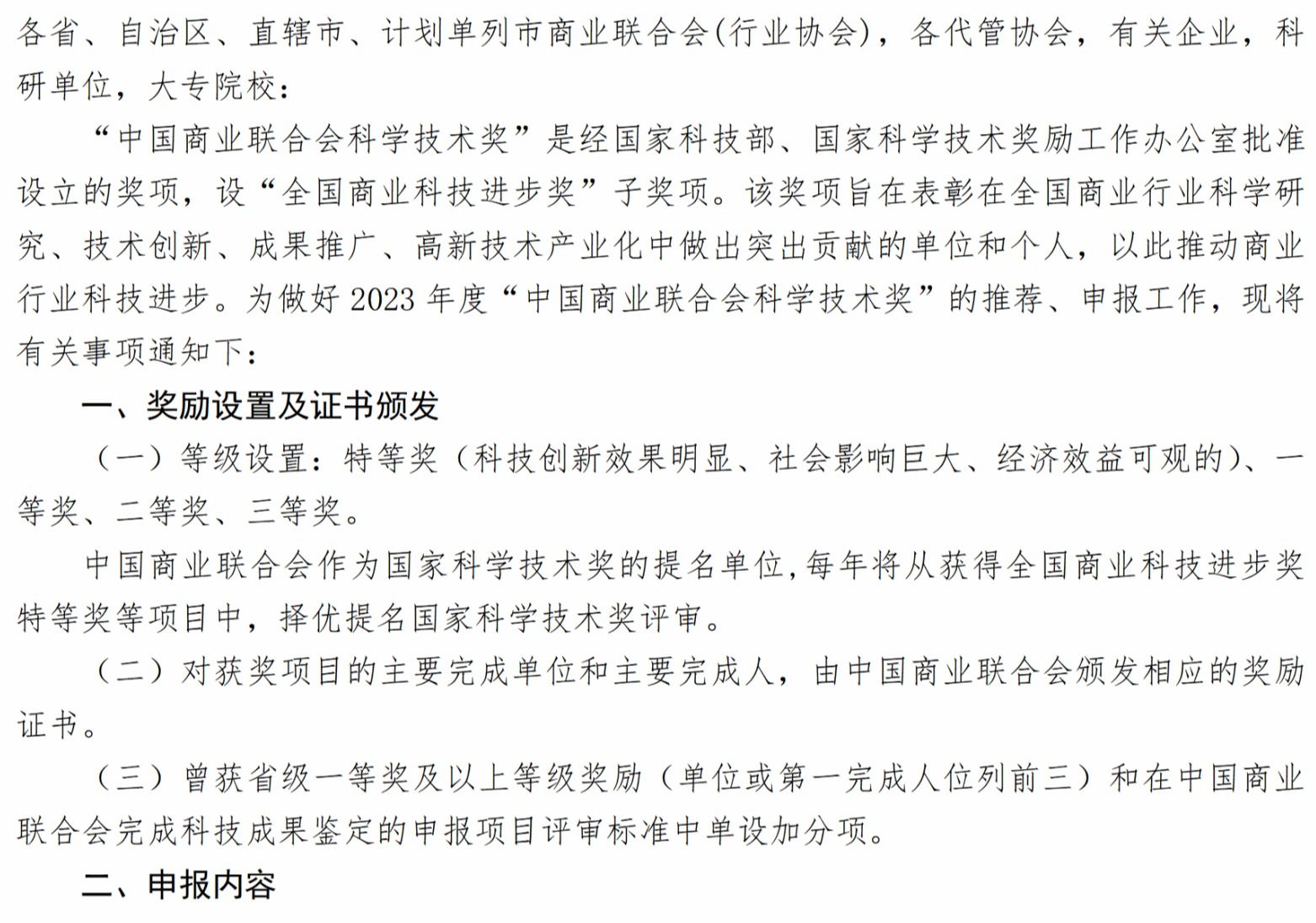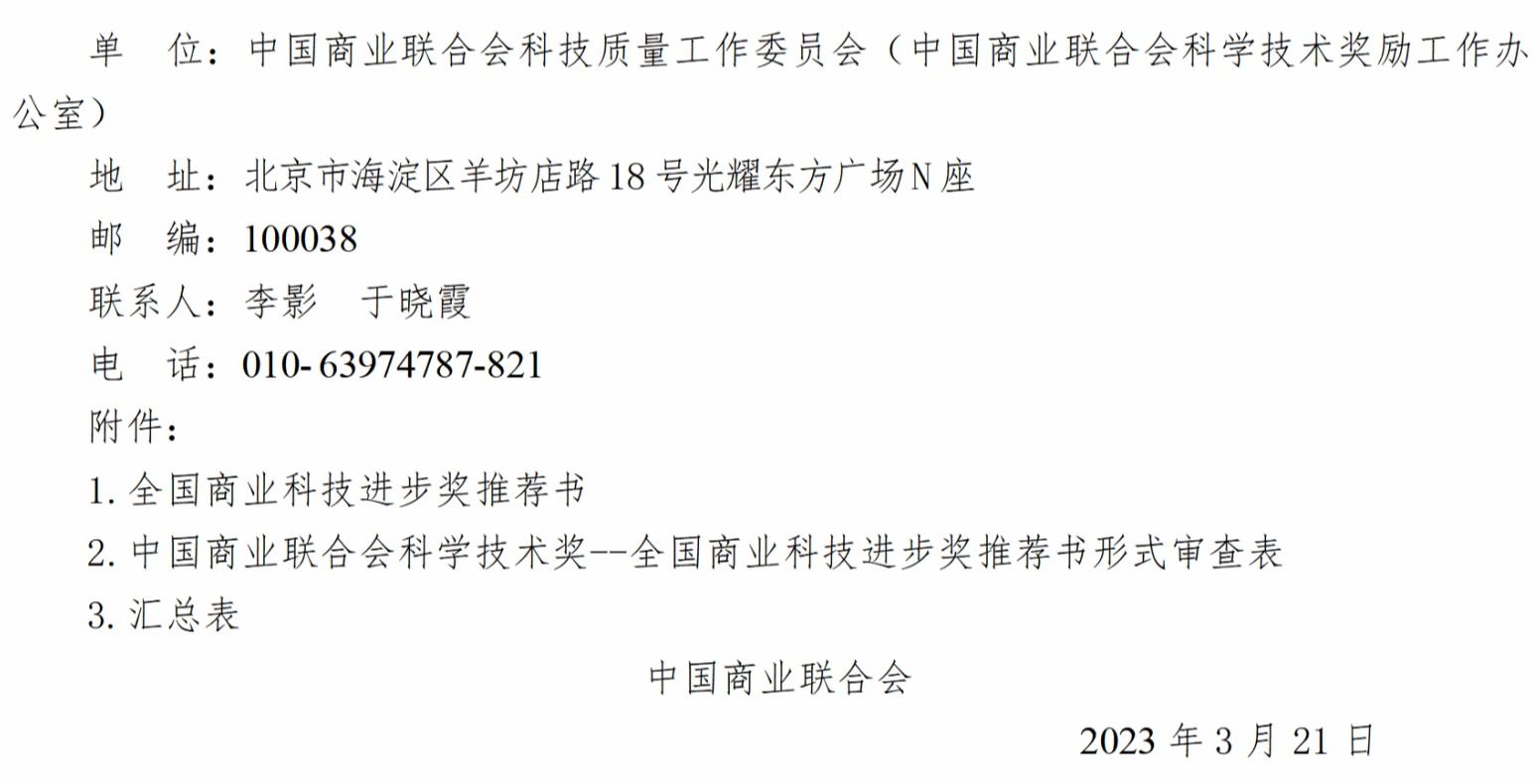 关于申报2023年度“中国商业联合会科学技术奖”的通知