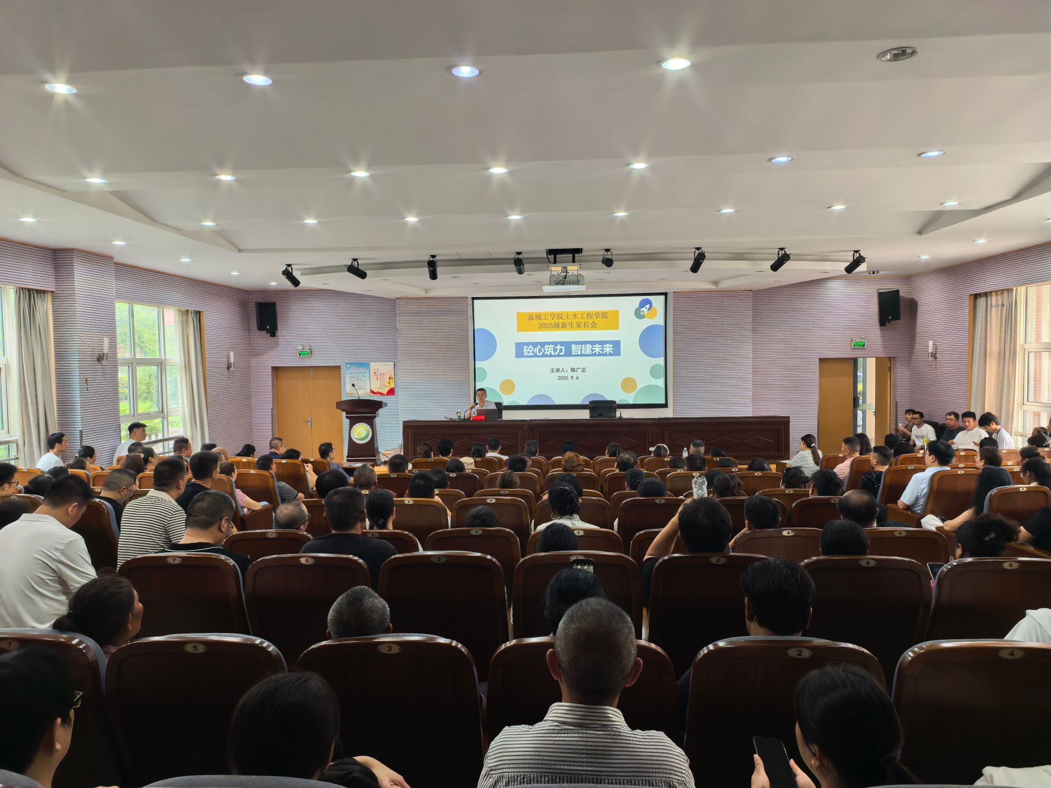 为加强家校沟通,凝聚育人合力,助力新生尽快适应大学生活,9月6日下午,7003全讯论坛联合“砼心苑”一站式学生社区在希望大道校区土木馆报告厅召开2025级新生家长见面会。学院党委副书记陈广正、团委书记徐佳、学工办副主任徐传洪、2025级新生辅导员及新生家长近300人参加。