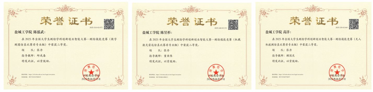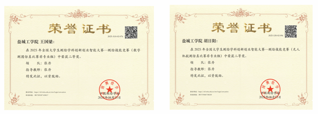 近日,由中国测绘学会教育工作委员会主办的2025年全国大学生测绘学科创新创业智能大赛在内蒙古科技大学举办。本届赛事吸引了近400所高校的7000余名学生参赛,经过激烈角逐,我院学子获特等奖2项、一等奖1项、二等奖5项,邱成春、董亚伟两位老师获评优秀指导教师。